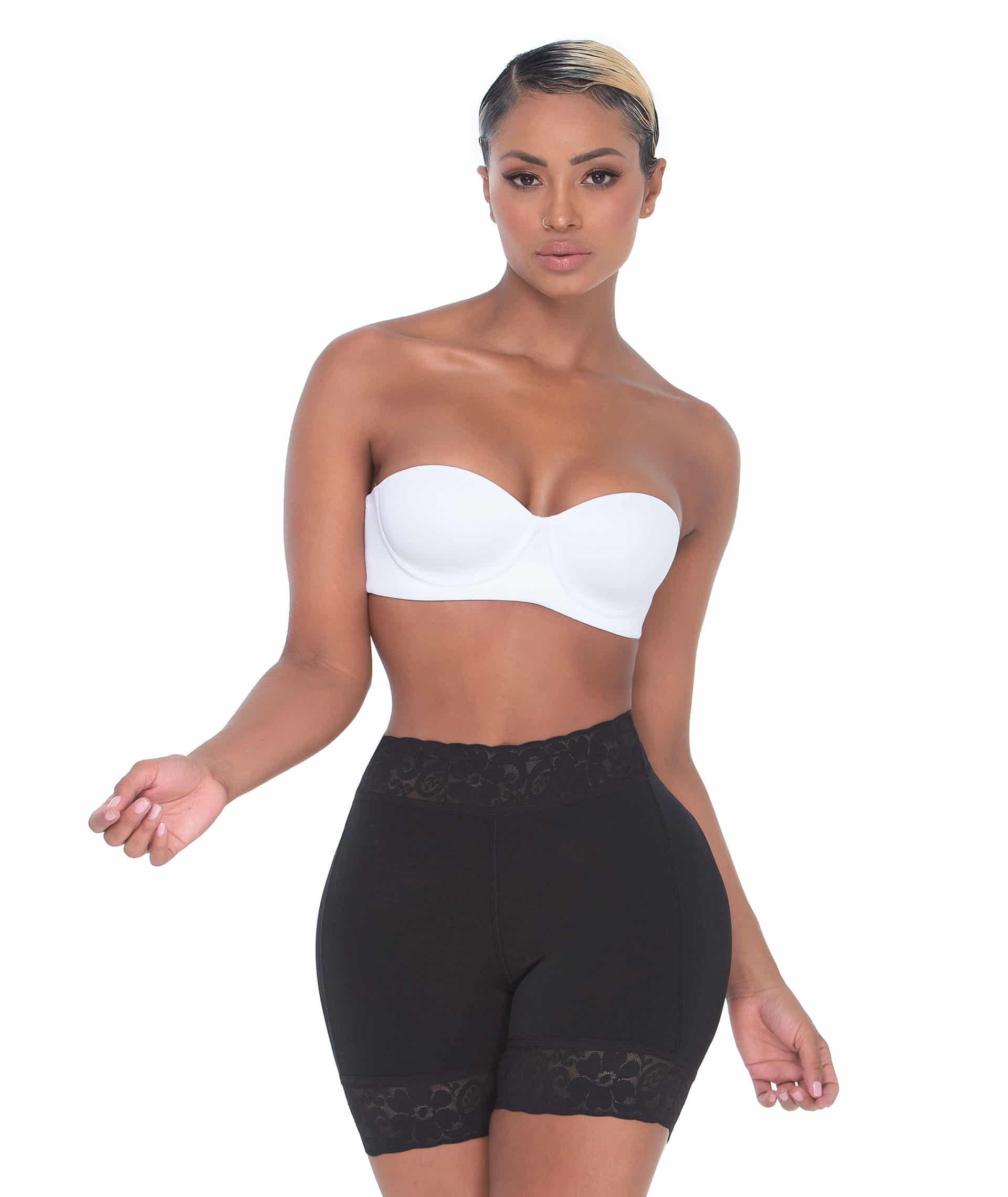 Sculpting Effect: Gathers the upper thighs and lower belly for a flattering silhouette.