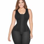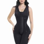 This jumpsuit features four boning designed to help you refine your waist over the long term. It has four rows of hooks for adjustable tightening and also includes a built-in bra!