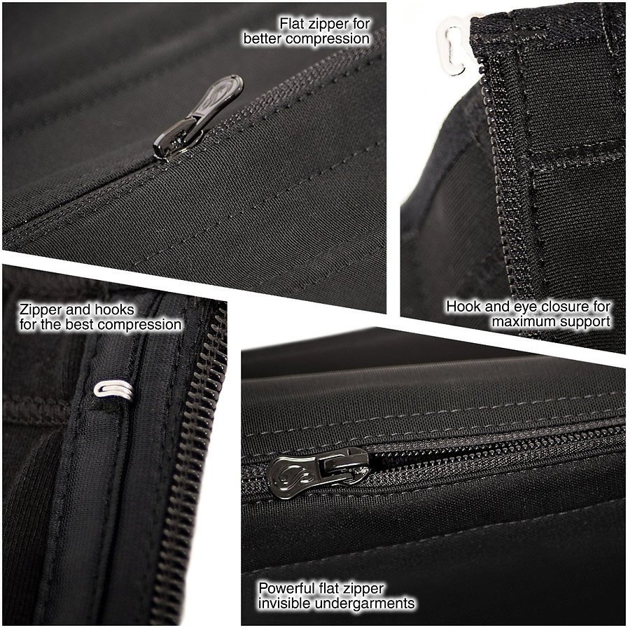 This corset is highly recommended if you’re looking for a discreet model to wear under tight clothing! Made from powernet, it remains invisible under clothing thanks to its zip that covers the hooks. It will help sculpt your waist with daily wear. With its 9 metal bones, it provides excellent back support and doesn’t create any folds. This model is the least visible under dresses.